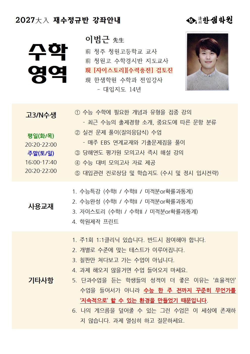 누가 신경쓰지 않더라도 매일 같은 시간에 독서실에 가서 (점심/저녁 시간 제외) 휴대폰 사용하지 않고 / 한 달에 한 번 모의고사 시간표에 맞춰서 스스로 시험을 보고 / 보기 싫은 성적표 확인하면서 스스로를 ‘객관화’ 하고 / 누가 잠을 자든, 게임을 하든, 시끄럽게 문을 닫든 그런것들에 신경쓰지 않고 묵묵히 자기 공부만 할 수 있으면 언제든 독서실에서 혼자 공부해도 괜찮습니다. 하지만 이 모든 것들을 해낼 수 있는 학생들은 아마 수능 전날까지도 지금 앉아있는 자리에서 마무리 하고 있을겁니다. 오히려 본인이 저 세 가지를 중요하게 여기지 않고 있다면 이곳은 비싼 독서실에 불과하다는 사실을 꼭 알았으면 합니다.